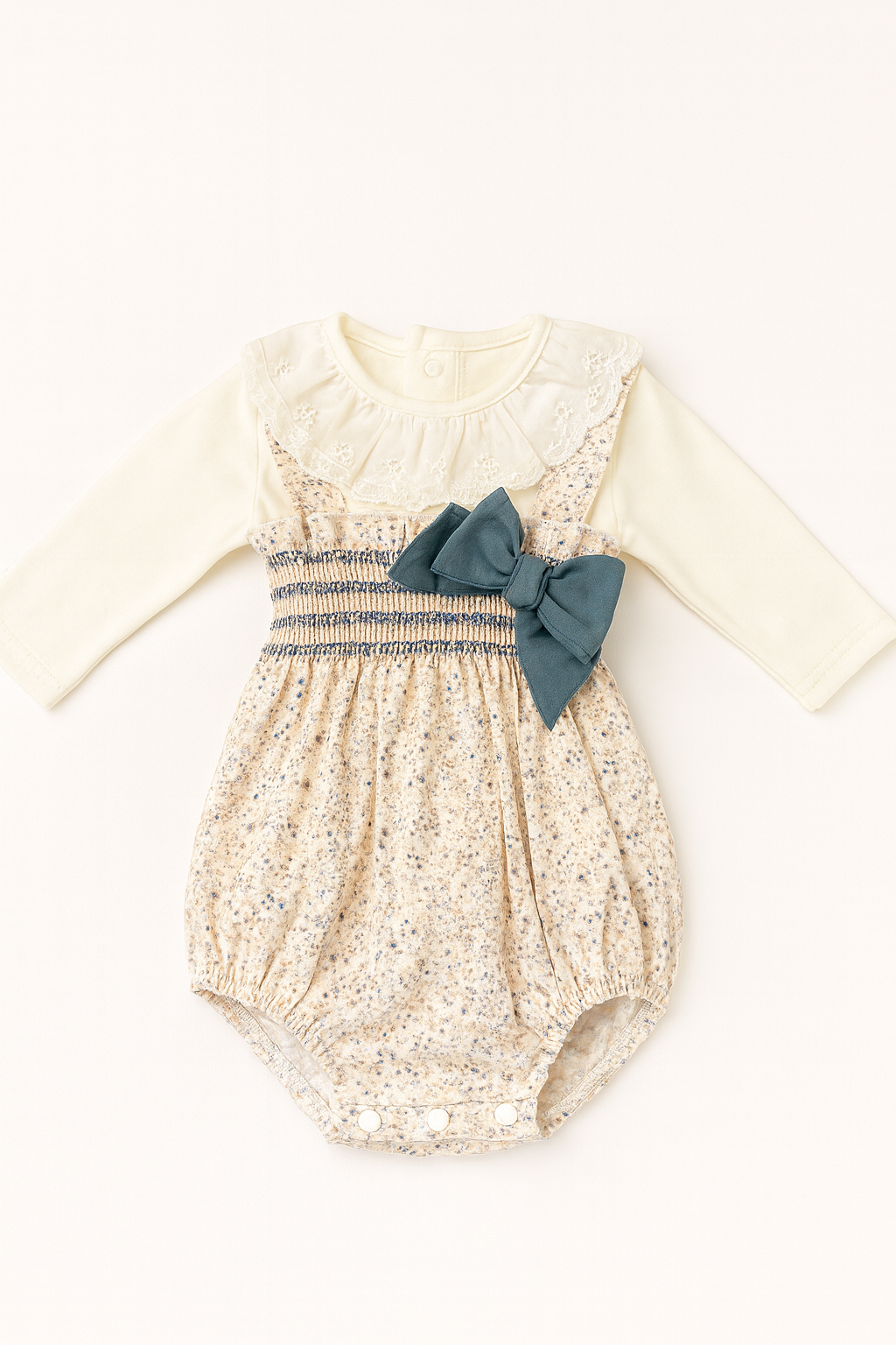 • This lovely baby romper set features a delicate floral romper paired with an elegant cream plumetilla blouse.