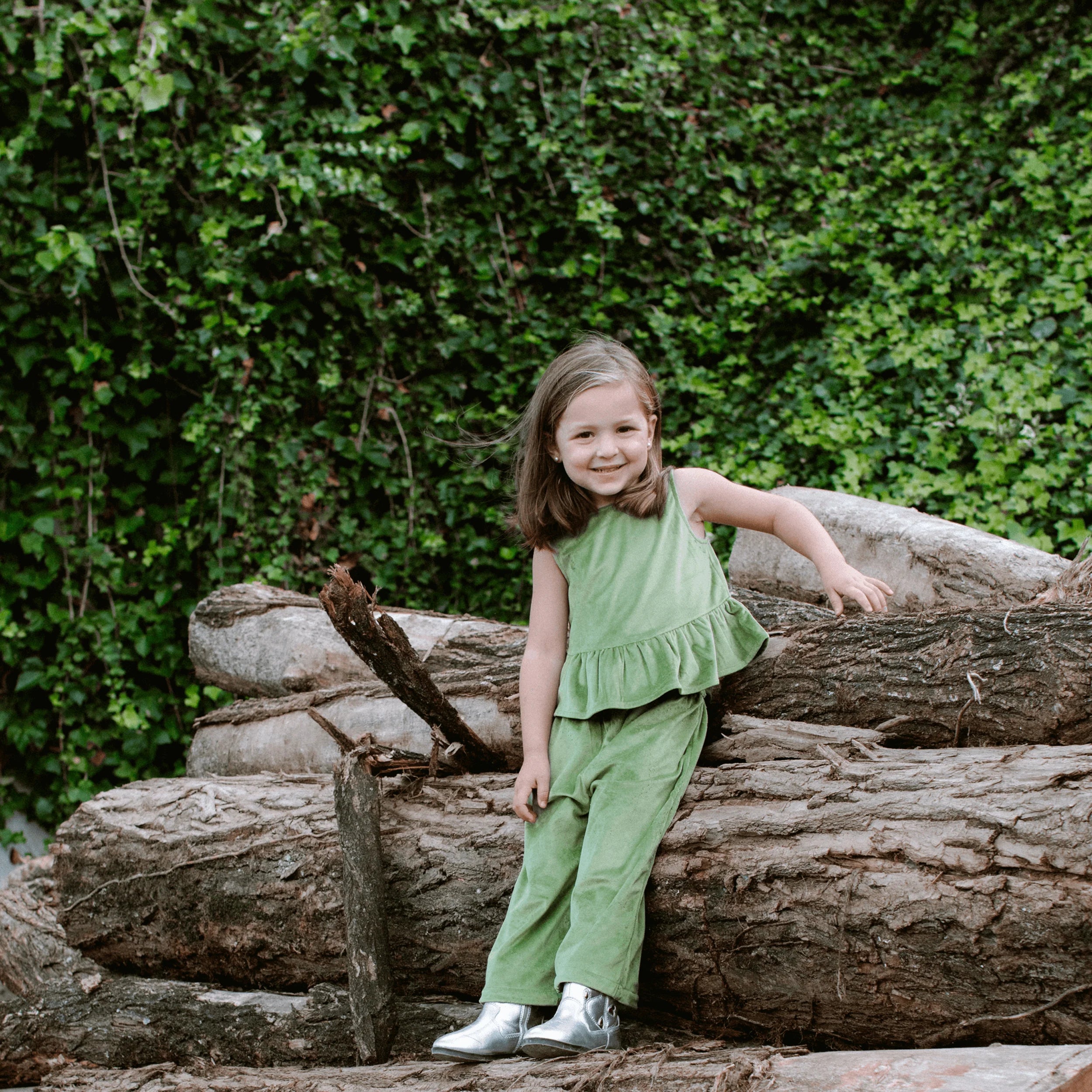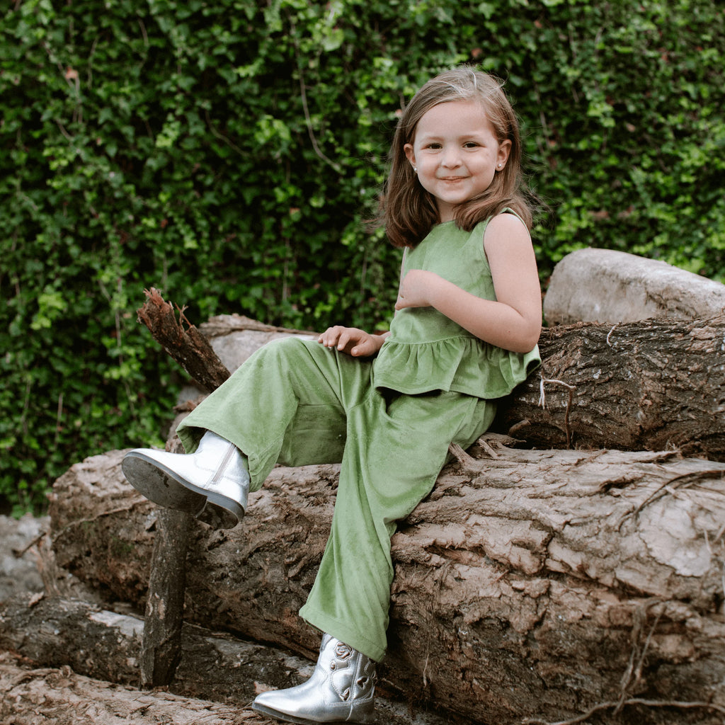 Green Jardin Velvet Top & Pants - 3-4Y is backordered and will ship as soon as it is back in stock.
