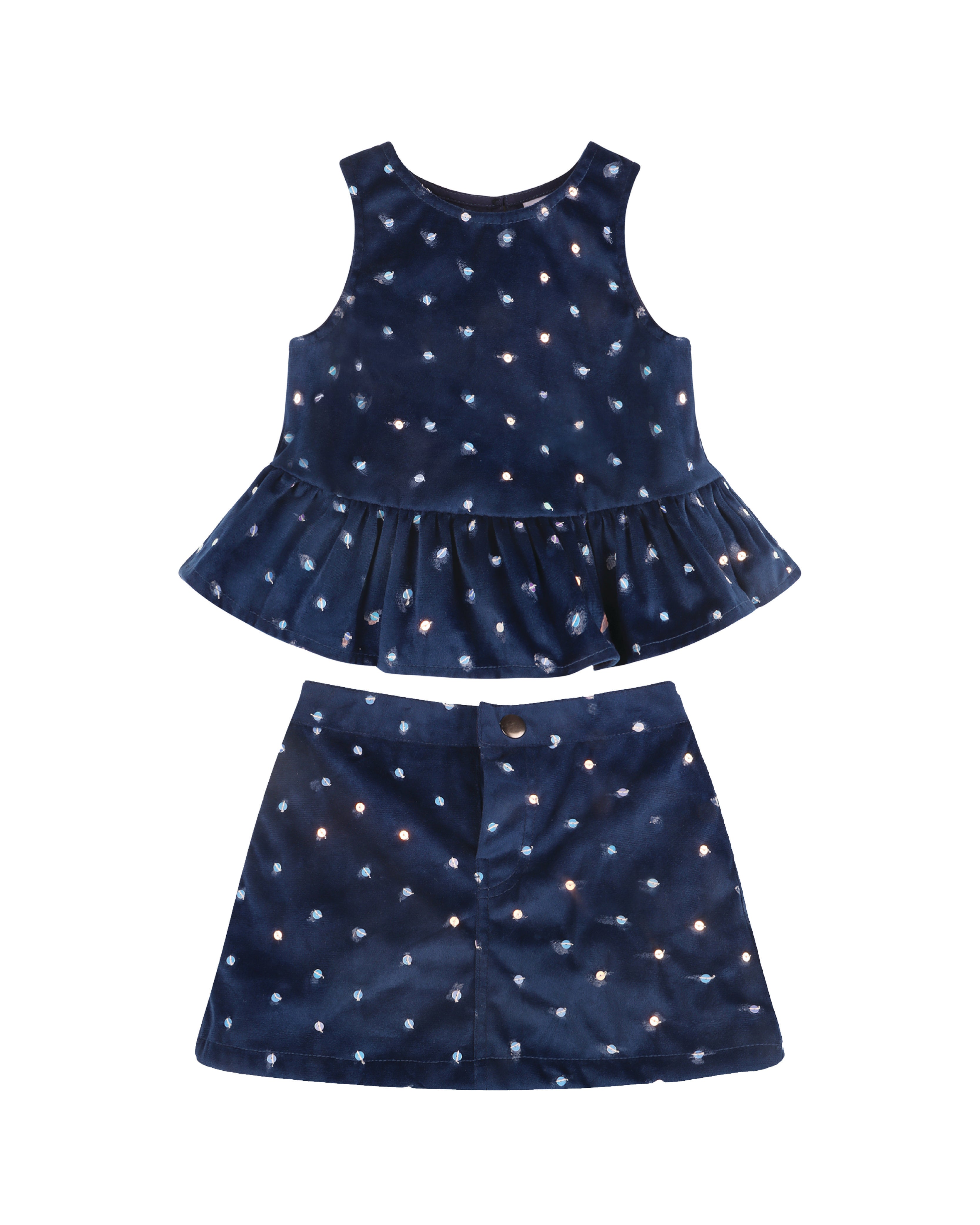 Navy Sequin Velvet Top & Skirt Set - 5-6Y is backordered and will ship as soon as it is back in stock.