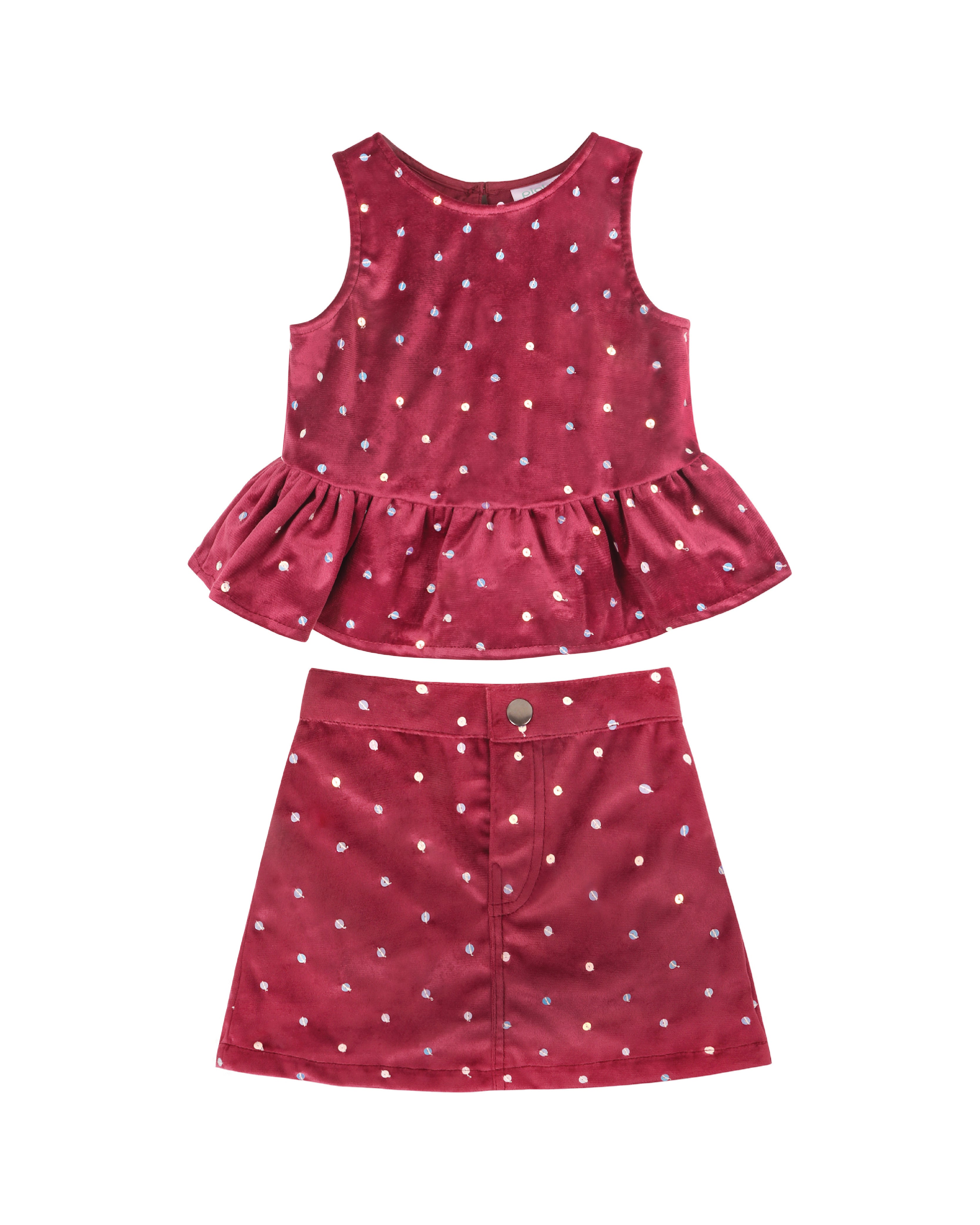 Red Sequin Velvet Top & Skirt Set - 3-4Y is backordered and will ship as soon as it is back in stock.
