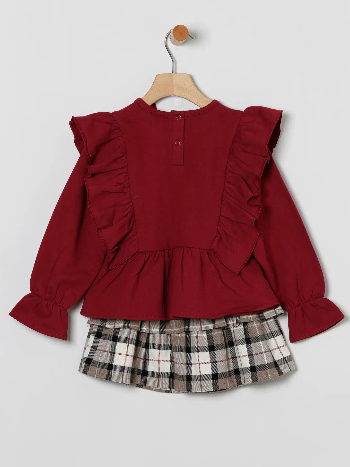 Red Ruffle Blouse & Plaid Skirt Set - 8Y is backordered and will ship as soon as it is back in stock.
